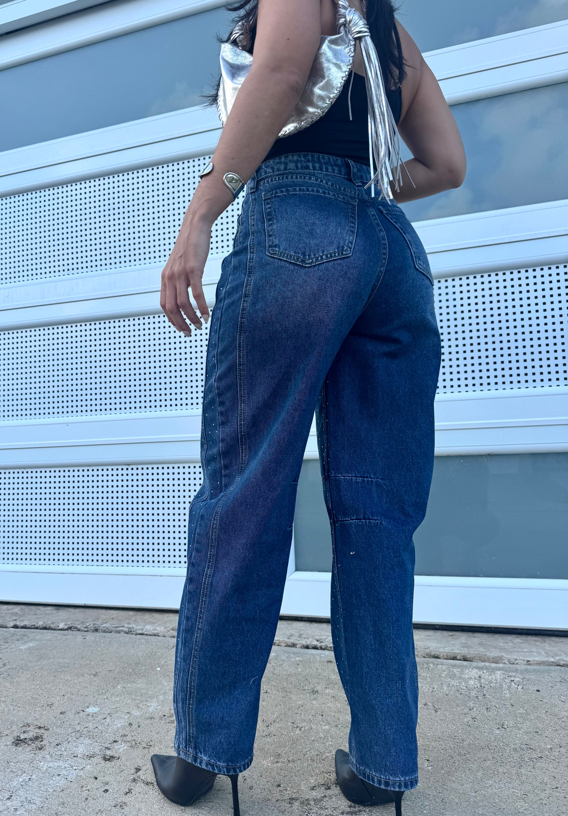 Rhinestone Barrel Jeans